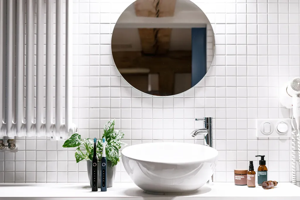 - Auf Wunsch Fliesenfugen mit EPODEX Fugenstift und Lineal nachziehen.