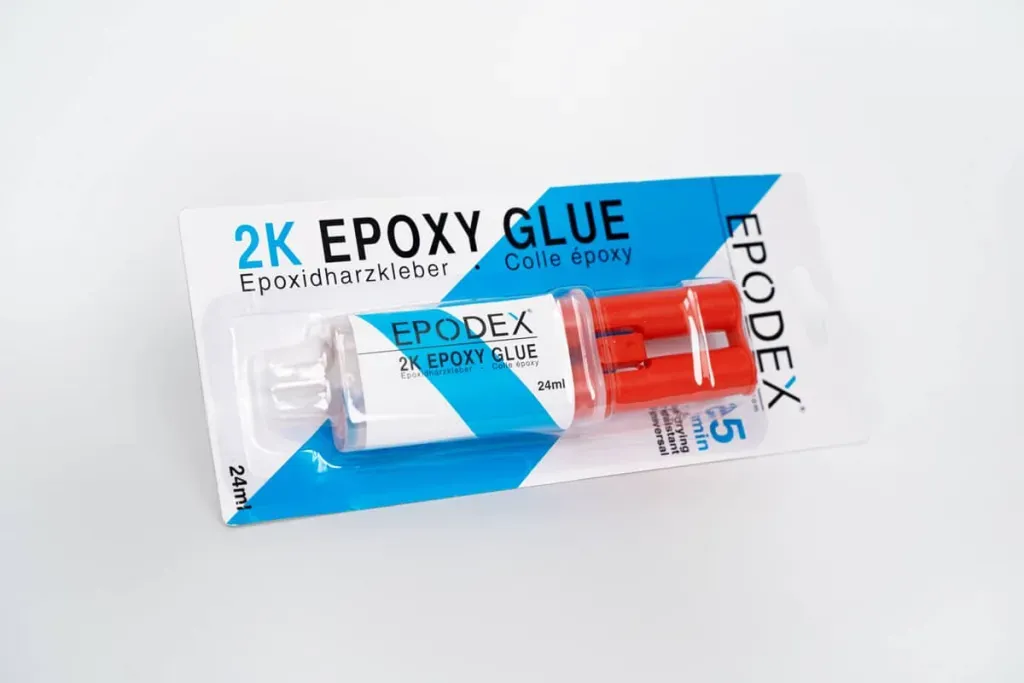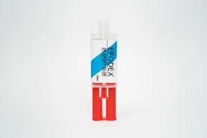 - Harz und Härter langsam durch Drücken des Kolbens herausdrücken.