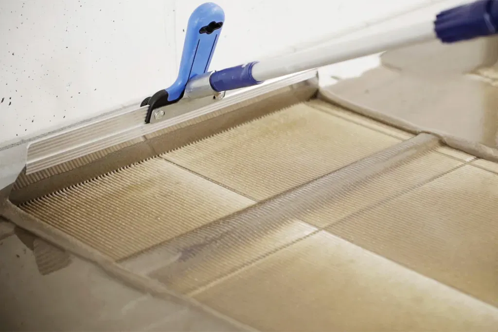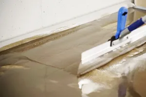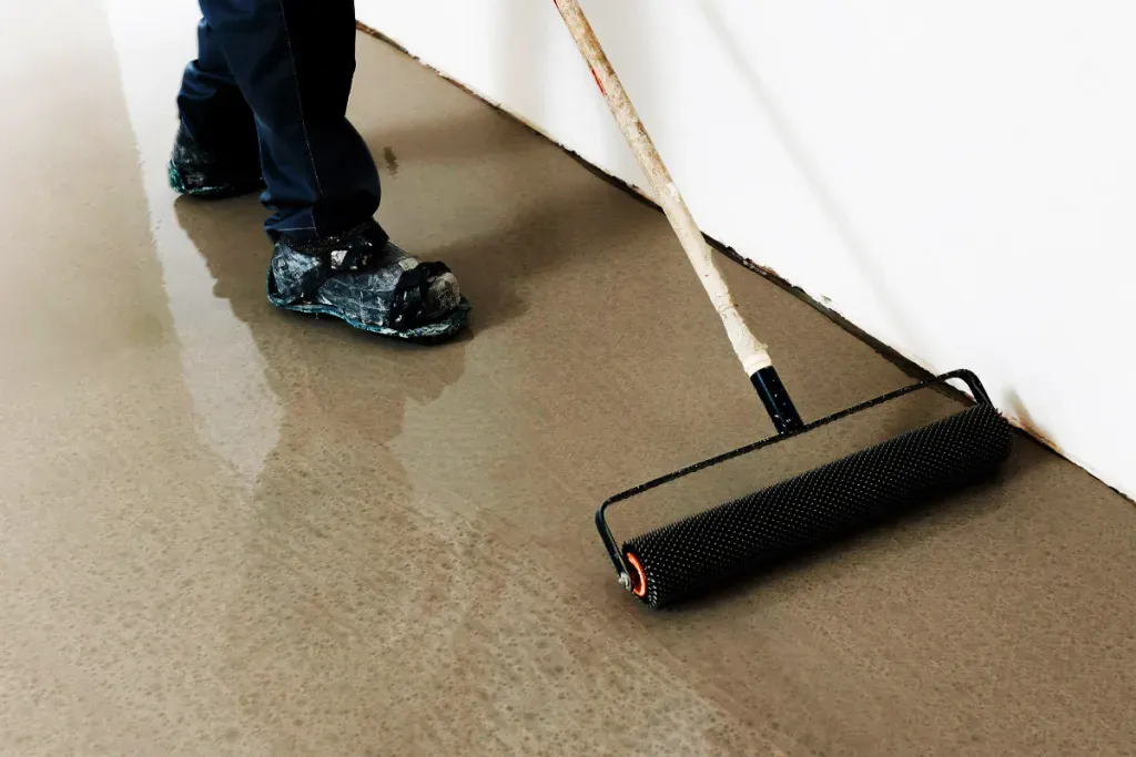 2. Die Mischung unmittelbar nach dem Anmischen auf den Boden gießen, mit einem Flächenrakel gleichmäßig verteilen und anschließend mit einer Stachelwalze entlüften, um eine gleichmäßige Oberfläche und ein glattes Finish zu erzielen.