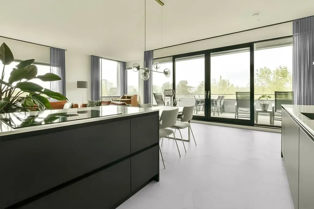 - Resultiert in gleichmäßiger, fugenloser, spiegelglatter, matter Oberfläche