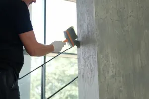 Beim Versiegeln von Mikrozement, Concrete Effect und anderen offenporigen und strukturierten Oberflächen, empfehlen wir speziell innerhalb der Dusche und in Bereichen mit dauerhaftem Wasserkontakt unsere PU Versiegelung ausschließlich mit einem Pinsel (z.B. 10cm Breite) im Kreuzgang aufzustreichen, um alle Poren vollständig zu schließen. Bei stark strukturierten Oberflächen außerhalb des Nassbereichs sollte auch mit einem Pinsel (und nicht mit einer Farbwalze) gearbeitet werden. Wir empfehlen zwei Streichgänge.