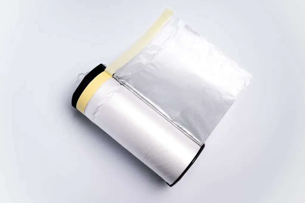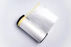 Nutzen Sie den Abroller mit Klinge um, mit Leichtigkeit die Abdeckfolie für die gewünschte Fläche zu schneiden. Die Abdeckplane ist nicht in diesem Produkt enthalten.