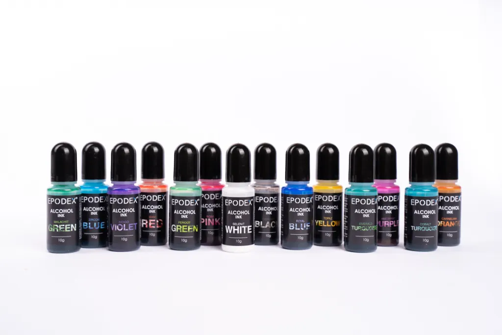 Die EPODEX Alcohol Inks sind hochkonzentrierte Alkoholtinten zur Realisierung von Farbeffekten. Im Lieferumfang enthalten sind je nach Auswahl eine oder mehrere 10g Fläschchen.