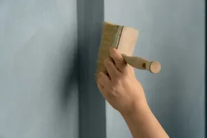 - Tragen Sie den ersten Anstrich der Kalkfarbe mit einem feinen Borstenpinsel auf.