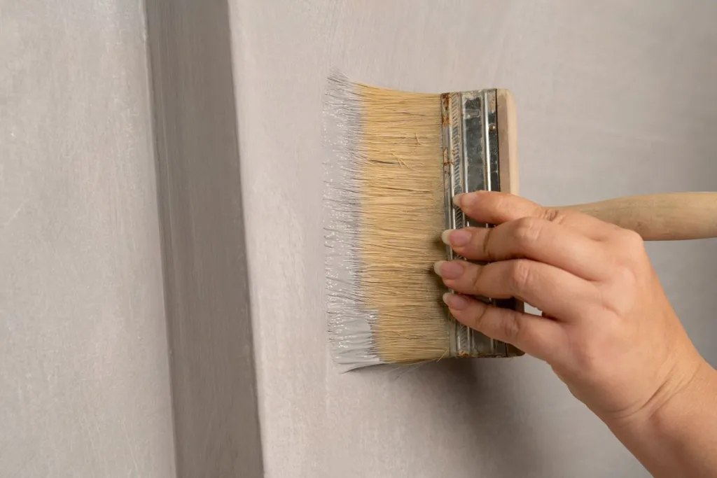 - Tragen Sie den ersten Anstrich der Kalkfarbe mit einem feinen Borstenpinsel auf.