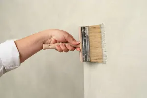 - Tragen Sie den ersten Anstrich der Kalkfarbe mit einem feinen Borstenpinsel auf.