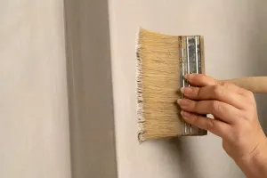 - Tragen Sie den ersten Anstrich der Kalkfarbe mit einem feinen Borstenpinsel auf.