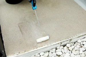 - Rollen Sie das Material mit einer Farbwalze auf die gewünschte Oberfläche. Wir empfehlen einen Anstrich. Verarbeitungszeit bei 20°C: ca. 25Min.