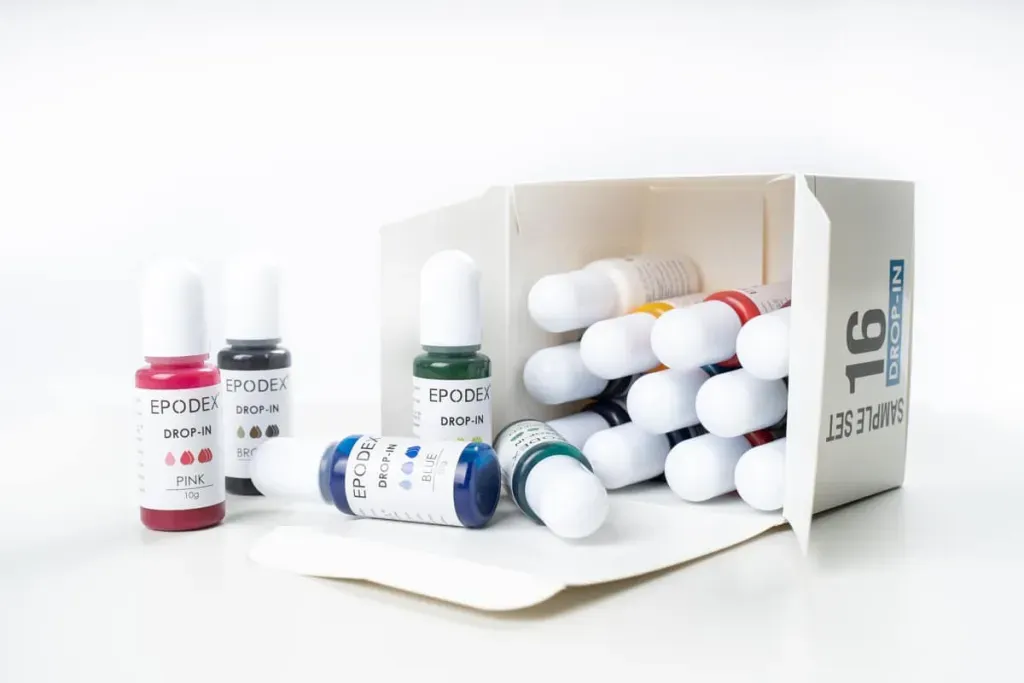 EPODEX Drop-In-Farbstoffe sind hochkonzentrierte Farbkonzentrate zur Realisierung transparenter Farben. Im Lieferumfang enthalten sind je nach Auswahl eine oder mehrere 10g Fläschchen.