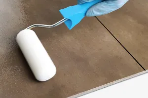- Pour the mixture into a paint tray and apply it thinly with a roller in a criss-cross motion.